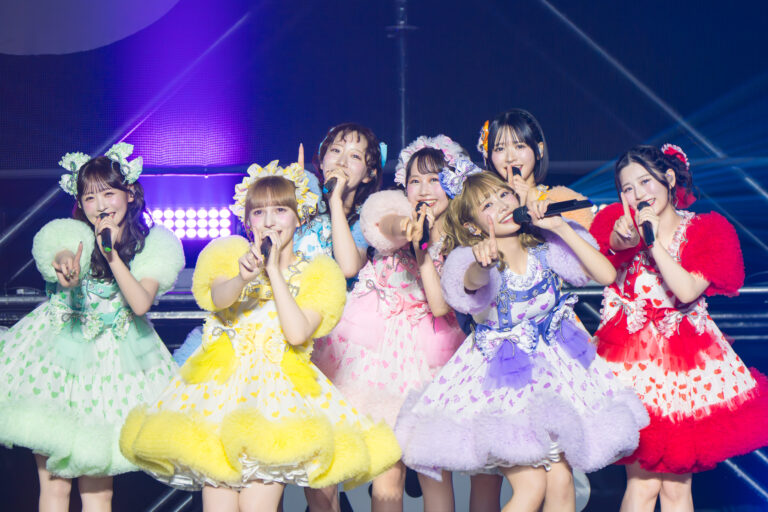新曲2曲を披露して一息ついたかと思いきや、ライブ後半戦では「わたしの一番かわいいところ」「NEW KAWAII」「かがみ」をフル尺メドレーで披露する。メドレーで会場中の盛り上がりが最高潮に到達すると、ステージ上ではメンバーによる三輪車対決が突如スタート。“はちゃめちゃわちゃ”な展開に会場に集まった沢山のファンの笑みがこぼれていた。ラストは「ピポパポ」「完璧主義で☆」を続けて披露し、ライブ本編が幕を閉じた。
