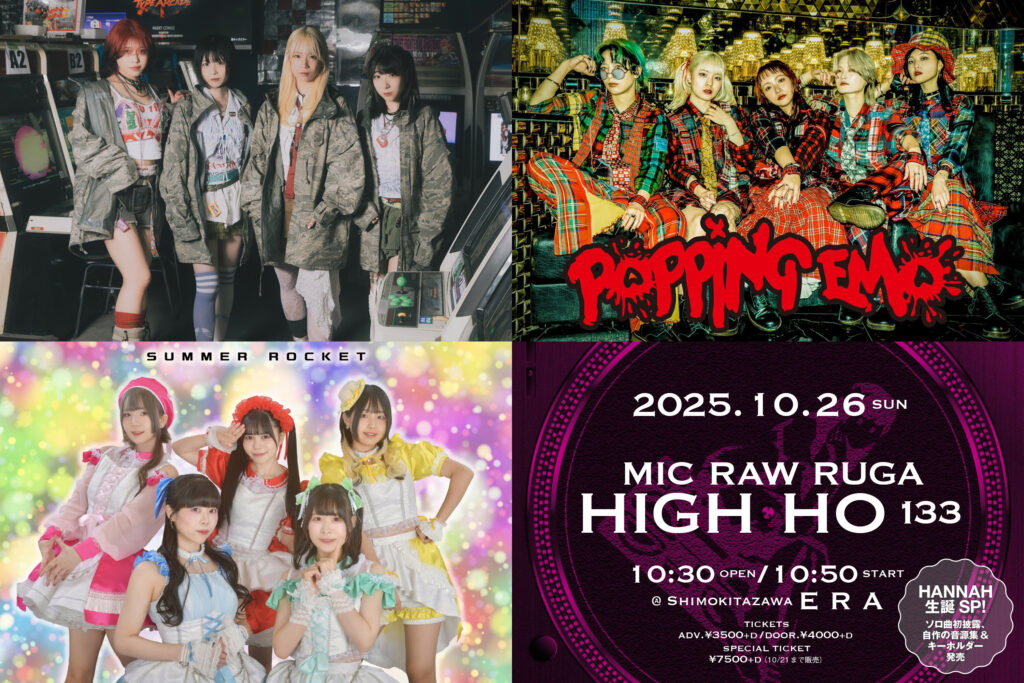 下北沢シャングリラでのワンマンライブを満員で開催し、成功を収めたガールズラップグループ「MIC RAW RUGA」(マイクロウルーガ)。E TICKET PRODUCTION(以下、Eチケ)プロデュースによる彼女たちの主催公演「HIGH-HO vol.134」が、10/26(日)、下北沢ERAにて、ゲストにPOPPiNG EMO、SUMMER ROCKET他を迎え開催される。