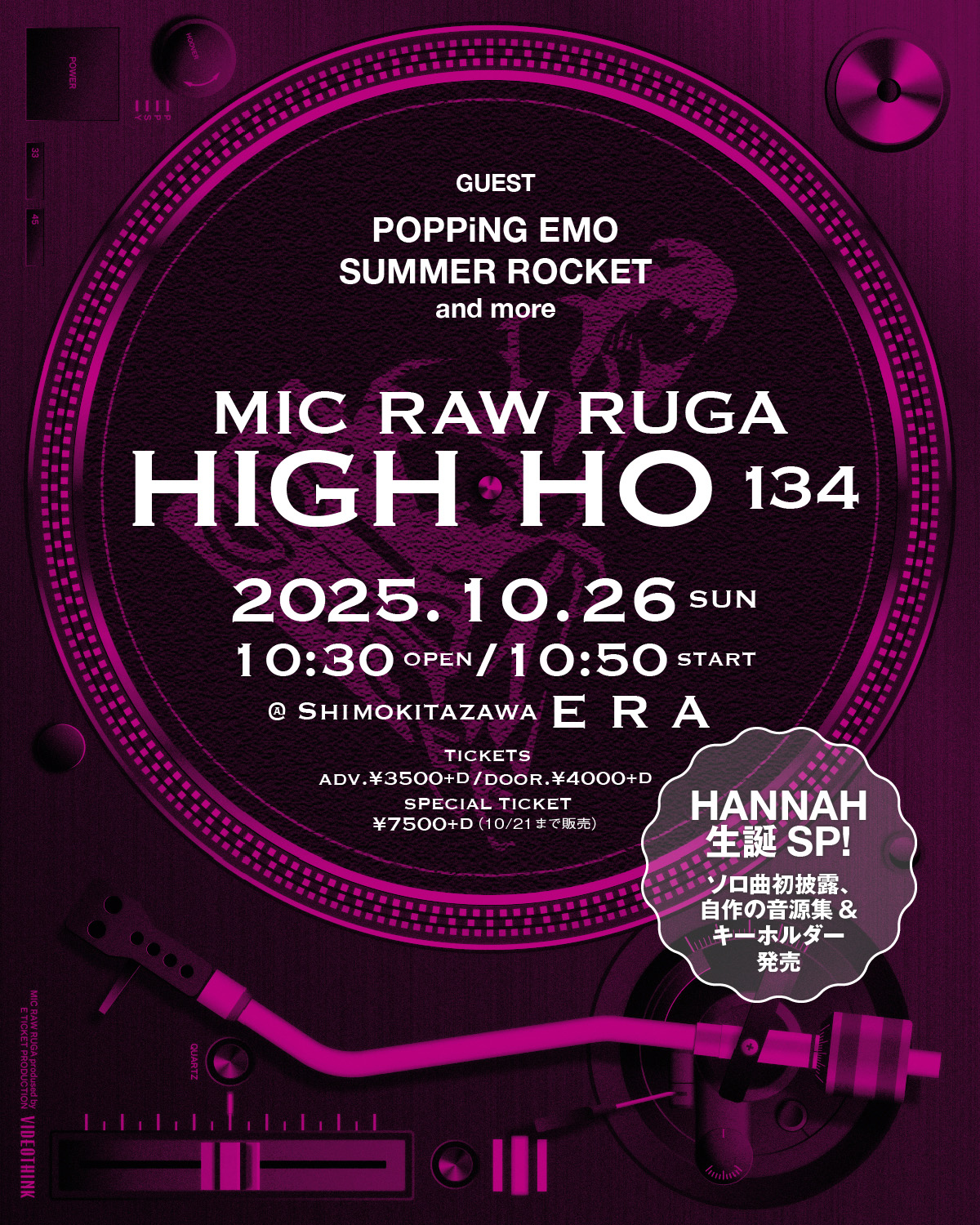 「HIGH-HO vol.134」が開催されるのは、10/26(日)10:50~、会場は下北沢ERAにて。チケットは10/13(月祝)22:00より、PassMarketにて販売。是非会場に足を運んでみて欲しい。さらに、MIC RAW RUGAは現在メンバーを募集中。興味があれば是非応募してみよう。
