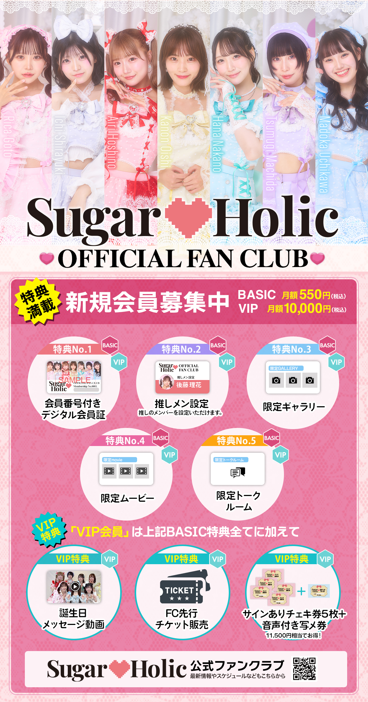 ここでしか見られない限定コンテンツやイベント先行受付など、ファンとSugar♡Holicをつなぐ公式ファンクラブが開設。より近い距離でグループの成長と日常を楽しめる特典が多数準備されている。