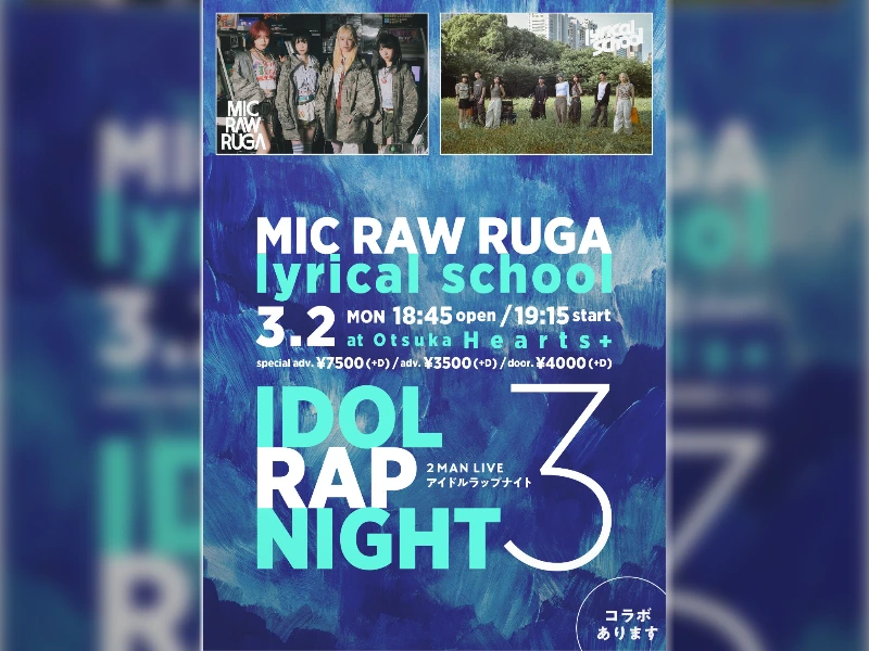 昨年7月に約13年ぶりに「アイドルラップナイト2」が開催され、好評を博した。lyrical schoolは4月に解散することを発表しているため、今回行われる「アイドルラップナイト3」は、両グループの最後のツーマンライブとなる。ライブでは、前々回、前回同様、両グループによるコラボが予定されている。また同公演の開催を記念して、MIC RAW RUGAは新作Tシャツを発売予定だ。