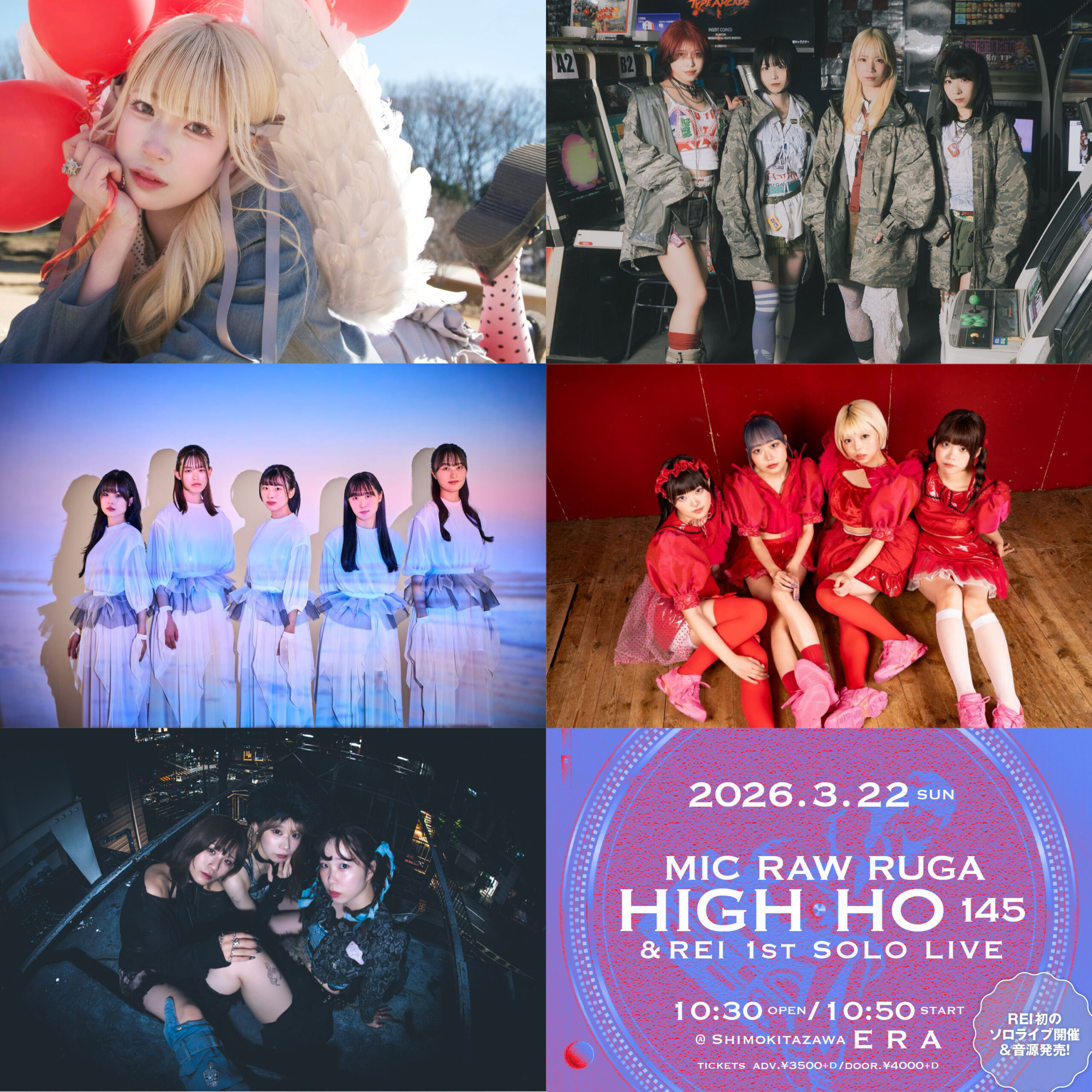 下北沢シャングリラでのワンマンライブを満員で開催し、成功を収めたガールズラップグループ「MIC RAW RUGA」(マイクロウルーガ)。E TICKET PRODUCTION(以下、Eチケ)プロデュースによる彼女たちの主催公演「HIGH-HO vol.145」が、3/22(日)、下北沢ERAにて、ゲストにSAKA-SAMA、ki.o.ku、不感症ヘビ苺を迎え開催される。また同公演内にて、メンバーのREIの初のソロライブ「R」も開催される。これまで発表して来たソロ音源に新曲を加えた1stアルバム「R」も発売される。